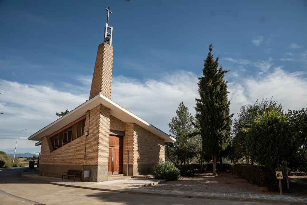 - Es de ladrillo caravista y cemento, de planta poligonal irregular y se cubre con tejado a una vertiente. Sobre la fachada hay un pilar de ladrillo con una cruz de hierro. Los santos del antiguo templo vuelven, una vez restaurados por las mujeres, a escuchar las plegarias de los vecinos en la nueva iglesia.